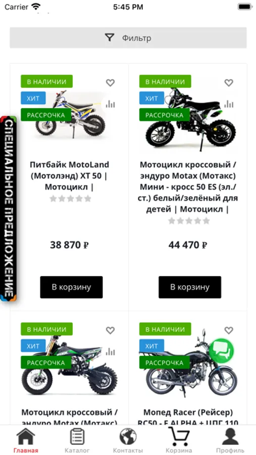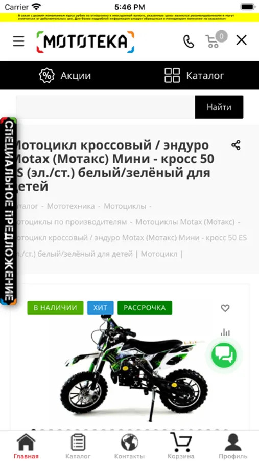 Мы прилагаем много усилий, чтобы усовершенствовать процесс выбора и приобретения товаров. Осуществляем все обязательства по обслуживанию и сервису всей приобретаемой у нас продукции. Используя приложение Мототека, вы сможете совершать покупки легко и экономично. Скачайте приложение Мототека прямо сейчас и ознакомьтесь с нашим ассортиментом товаров, а также действующими акциями. Превратите процесс выбора в удовольствие!
