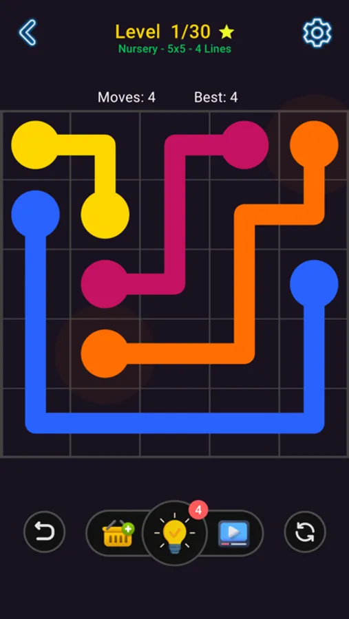 - Your mission is about to connect two dots which have same color by drawing line between them.