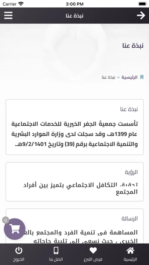نبذة عنا : تأسست جمعيةُ الجفر الخيرية للخدمات الاجتماعية عام 1399هـ، وقد سجلت لدى وزارة الموارد البشرية والتنمية الاجتماعية برقم (39) وتاريخ 9/2/1401هـ.