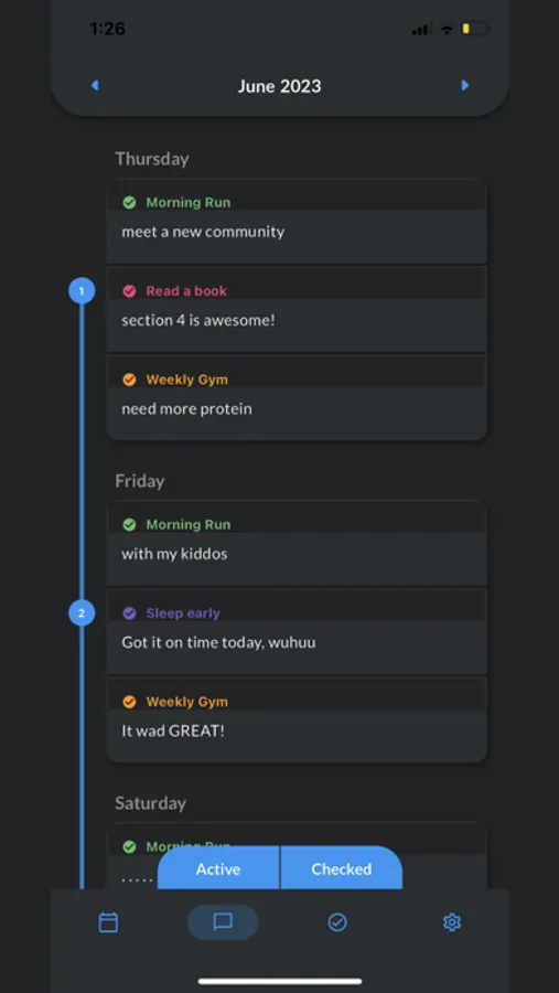 Keep track of your habits and tasks with ease by using the timeline note feature. Capture your monthly progress and use it as a journal or bullet journal. It's a convenient tool for those who enjoy journaling and want to visually see their habits and tasks over time.