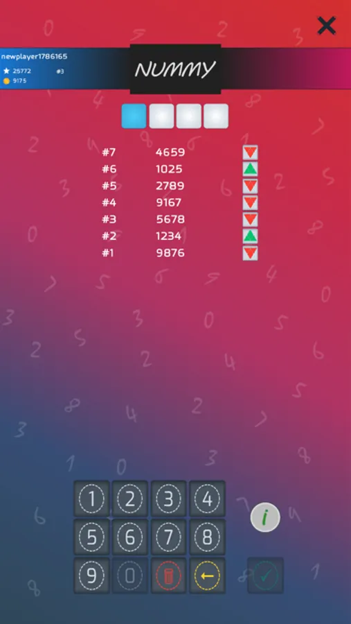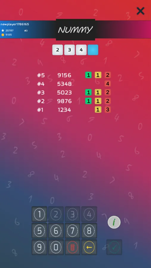 Nummy is a delightful game that will surprise you with its entertaining number puzzles and give you the opportunity to make new friends within its vibrant gaming community! Challenge yourself in single-player mode, where you'll push the limits of your mind to solve intriguing puzzles and find the correct numbers in record time. As you break your own records, you'll be able to share your achievements and compete against other players.