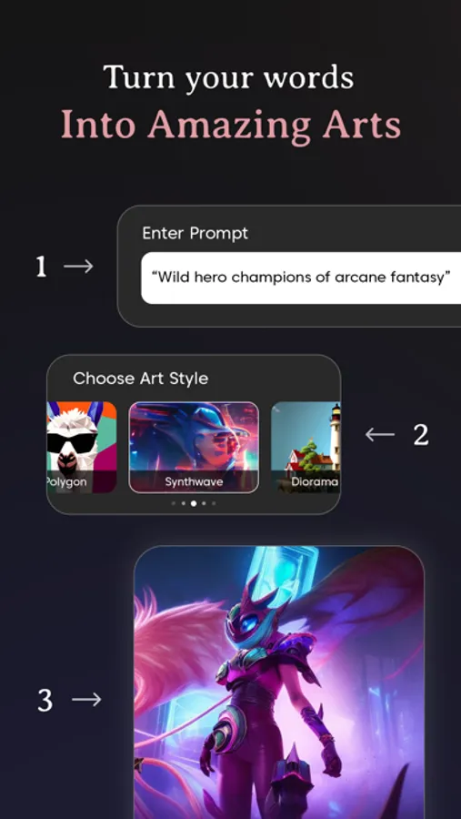 AI Art Avatar - Cartoon Filter app with you can easily create 3D, Anime, Sketch, and convert images into cartoonist look within some seconds. This App is specially designed to convert your text into an image, select one of your chosen styles from the collection such as splatter, festive, cartoonist, Spectral, Flora, Diorama, Mystical and Dark Fantasy to adorn your ideas selected from different styles and turn your text into adorable avatar image. This works very effectively to easily transform your photos and faces into different avatar animes.