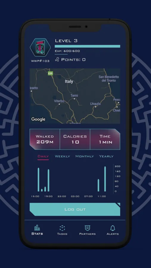 Walkers app provides various functionalities and ways of gaining experience and leveling up.