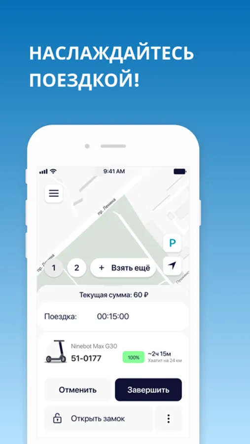 - По окончании поездки просто завершите аренду в приложении.