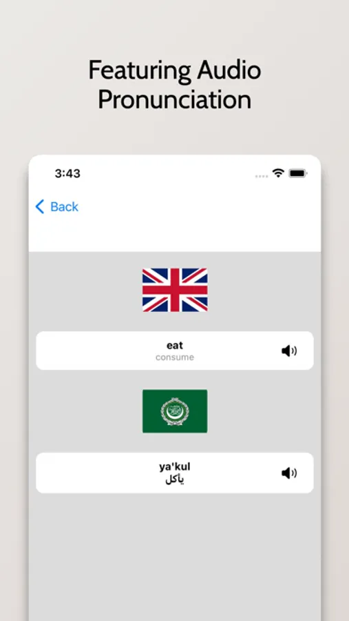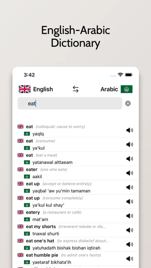 Audio Pronunciation: Not sure how to pronounce that word? No worries! Our app provides audio pronunciation in both Arabic and English, helping you sound like a native.