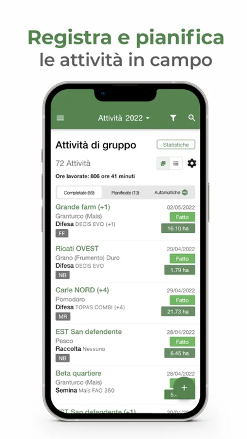- ATTIVITÀ: registra trattamenti e lavorazioni in campo in modo semplice