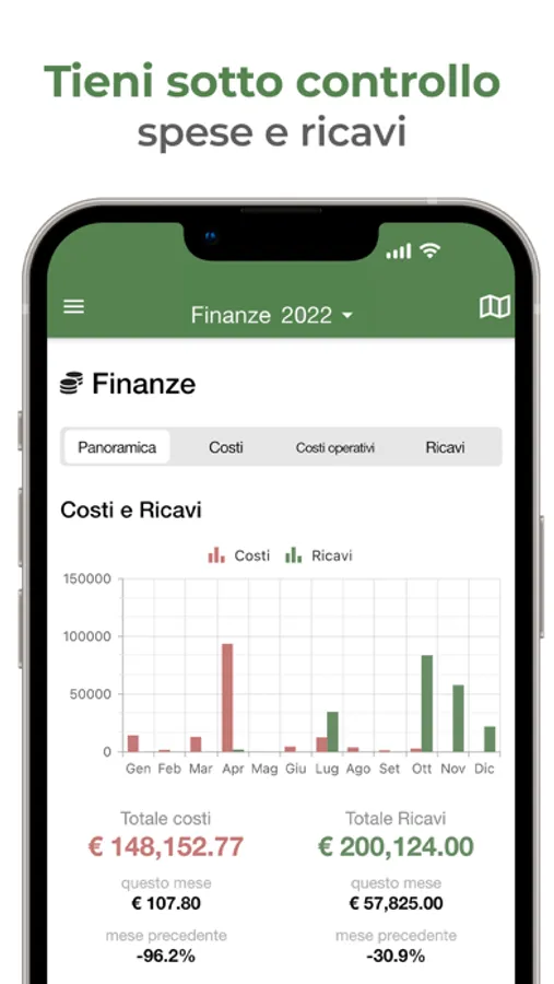 - FINANZA: calcola la distribuzione dei costi e confronta le colture per una gestione economica efficace