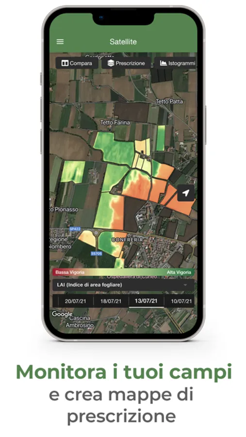 - SATELLITE: monitora la vigoria dei tuoi campi con le immagini satellitari scattate ogni 5 giorni