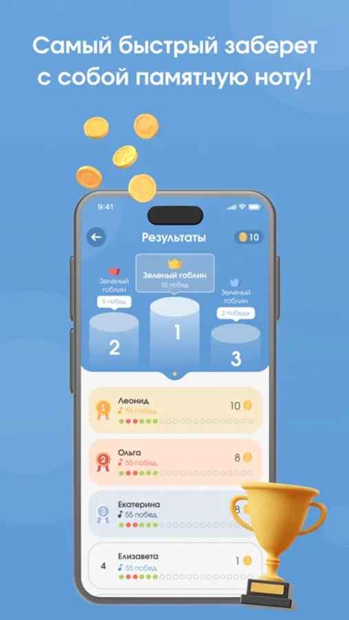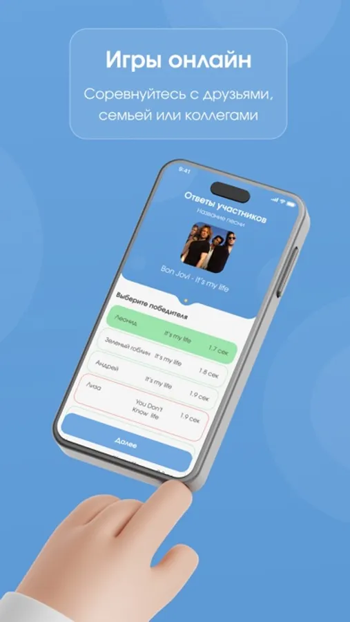 The player is given 30 seconds to guess the song. The faster he guesses, the higher the probability that the host of the game will choose his answer. The winner will be the one who scores the most points by the end of the competition.