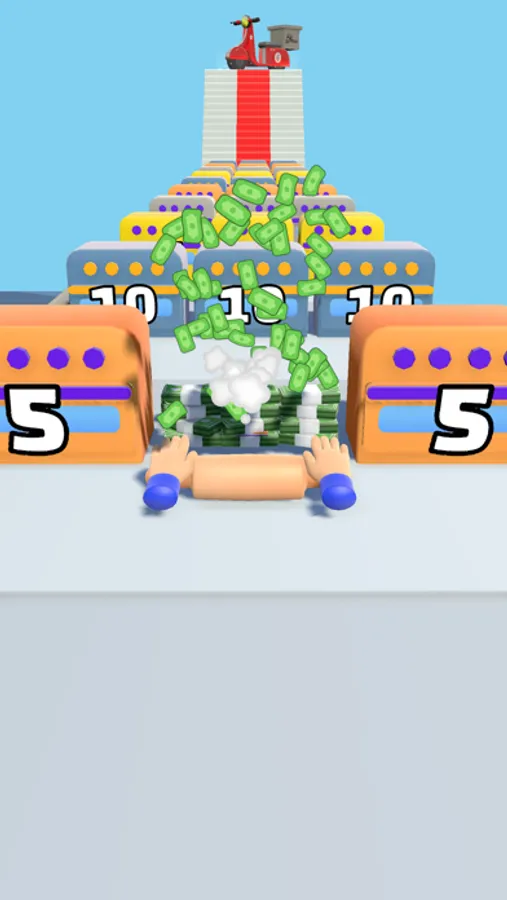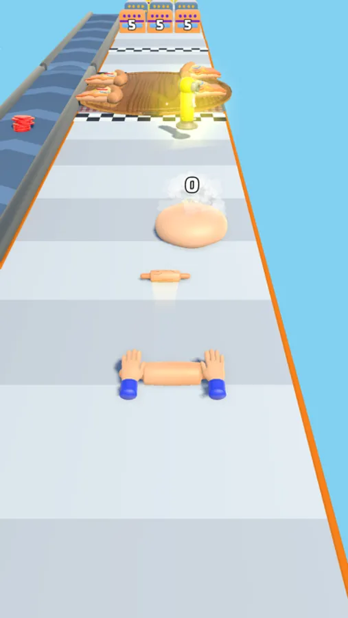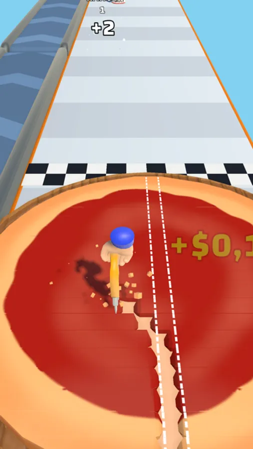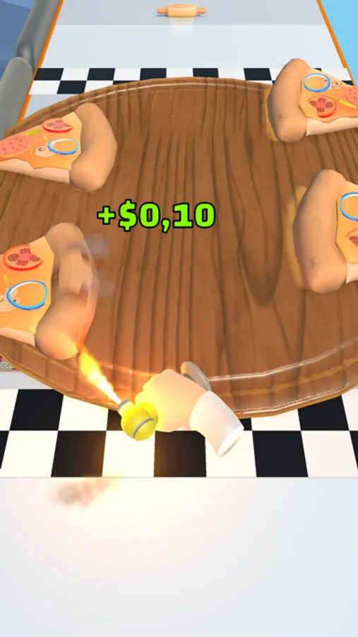 Spread sauce on the rolled-out pizza dough, cut, bake, and earn game coins. Speed up by upgrading.