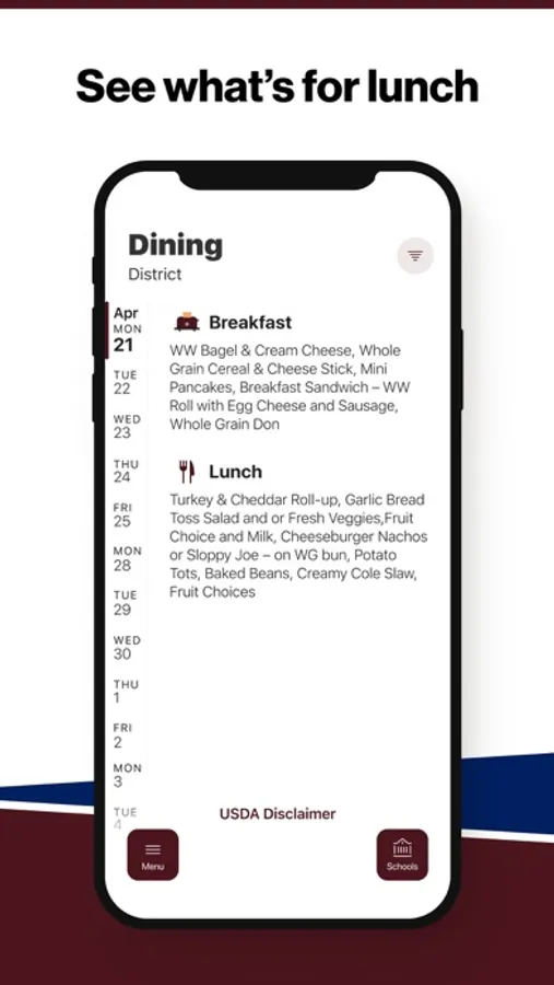 Within the dining section, you’ll find an easy to navigate, weekly menu, sorted by day and meal type.