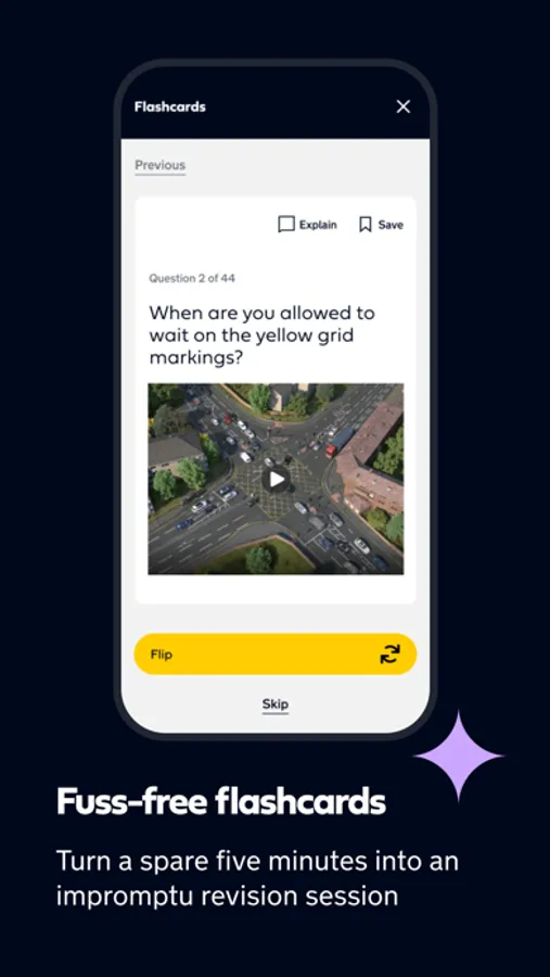Save theory test questions for later and revisit any incorrect answers further down the road. You’ll also get instant explainers if you need them.