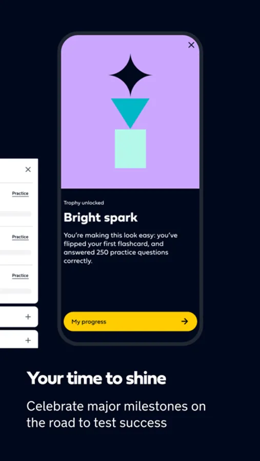 View a complete breakdown of your stats including hazard perception scores, so you’ll always know where your blind spots are. And for every major milestone you tick off, you’ll earn a little ‘well done’. Which is nice!