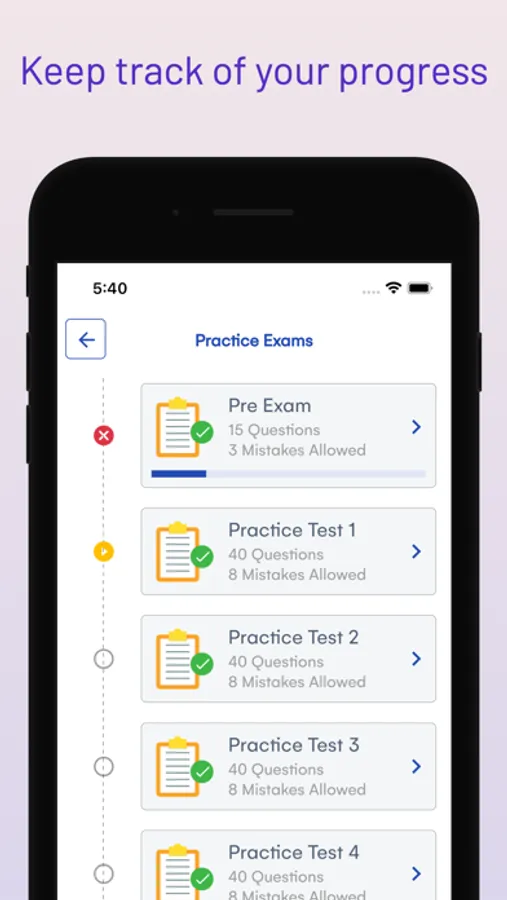 - You can track how many questions you have done correctly, incorrectly, and get a final passing or failing score based on official passing grades