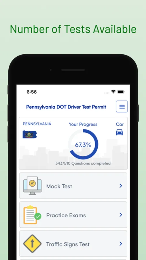 Our Pennsylvania PA Driver Test Permit app , is easy to use and accessible from anywhere, on any device. You can practice on your phone, tablet, at home or on the go. And with our free and unlimited tests, you can practice as many times as you need to feel comfortable and confident for the real DMV Written test .