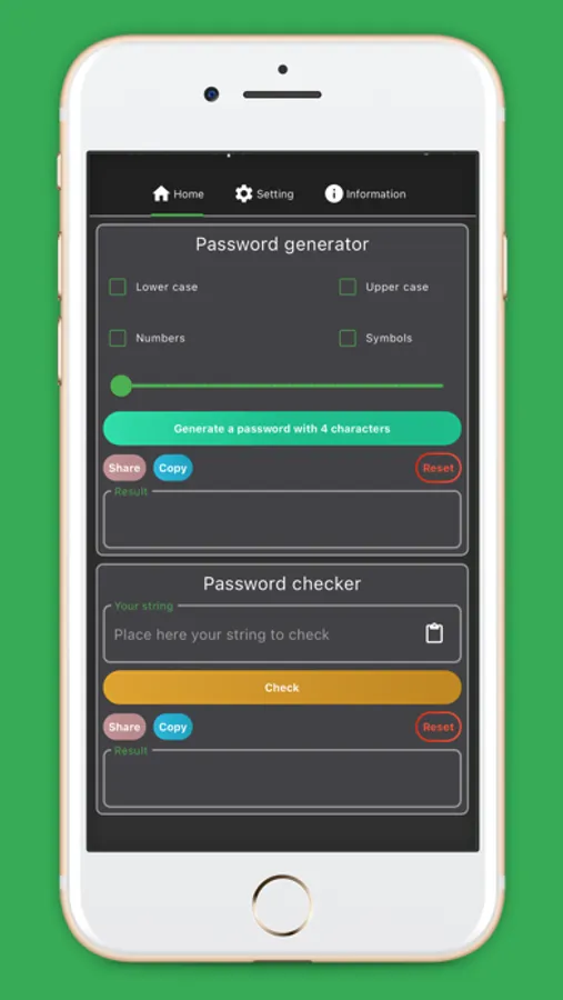 - Very easy, easy just one click to create random & secure passwords based on parameters like number, symbols, lower case, upper case
