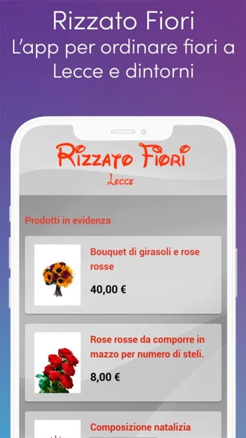 Benvenuti nell'app di Rizzato Fiori, la soluzione perfetta per tutti i vostri bisogni floreali. Con la nostra app user-friendly, potrete esplorare un vasto assortimento di meravigliosi fiori e composizioni artistiche, che renderanno ogni occasione indimenticabile.