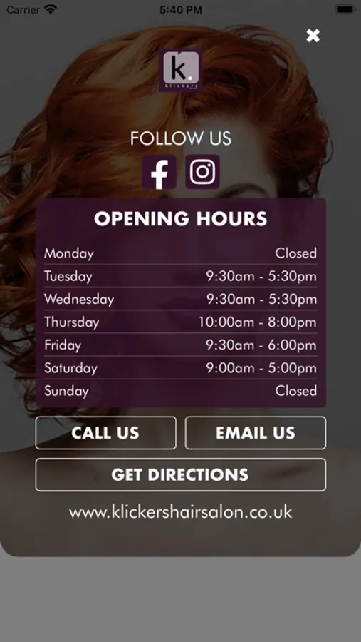 Klickers Hairdressing booking app allows clients to log on and make bookings online under their own profile 24/7. Clients can track loyalty points as well as looking at historic and future bookings and get directions for their favourite salon.