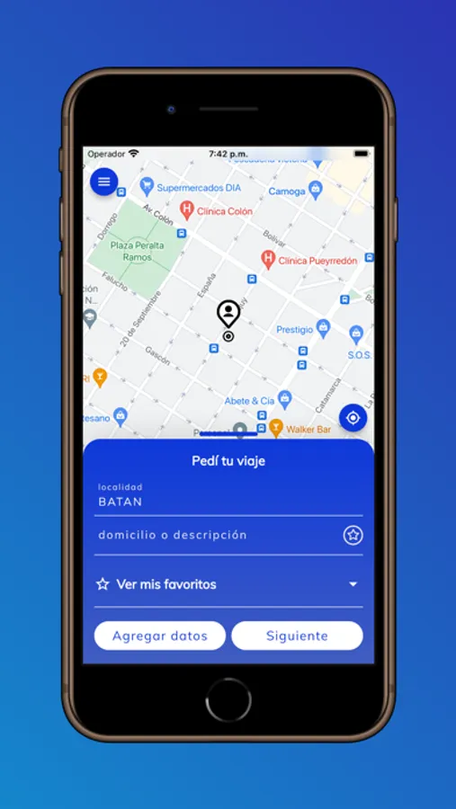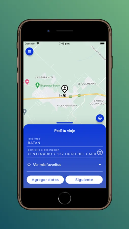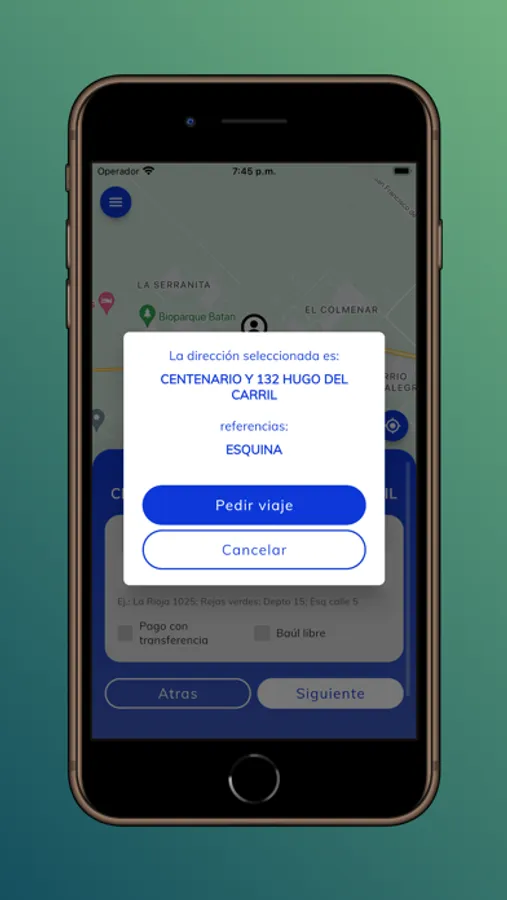 - Solicitud de viajes desde una ubicación elegida sobre un mapa o carga manual de calles.