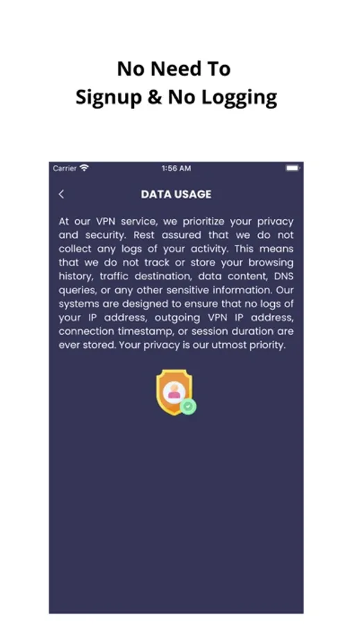 At our VPN service, your privacy and security are our top priorities. You can trust that we don't collect any logs of your online activities. This means we don't monitor or store your browsing history, where you go online, what data you access, your DNS queries, or any other sensitive information. Our systems are designed to make sure we never keep any records of your IP address, the IP address you use while connected to our VPN, when you connected, or how long your session lasted. We're dedicated to safeguarding your privacy above all else.