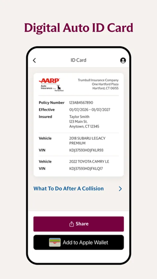 Access your digital personal auto ID cards on the go, download them to your phone or save them to your Apple Wallet.