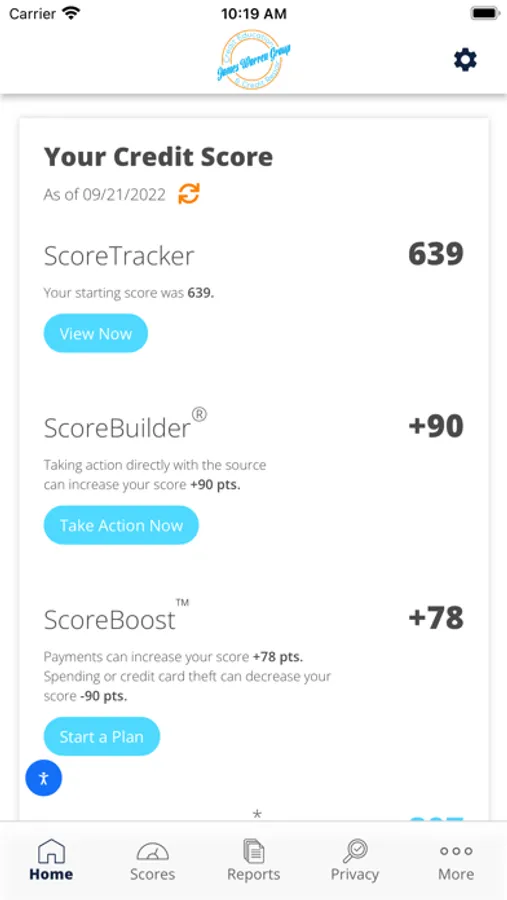 SCORETRACKER: Effortlessly track all of your credit scores with simple charts or in-depth information.