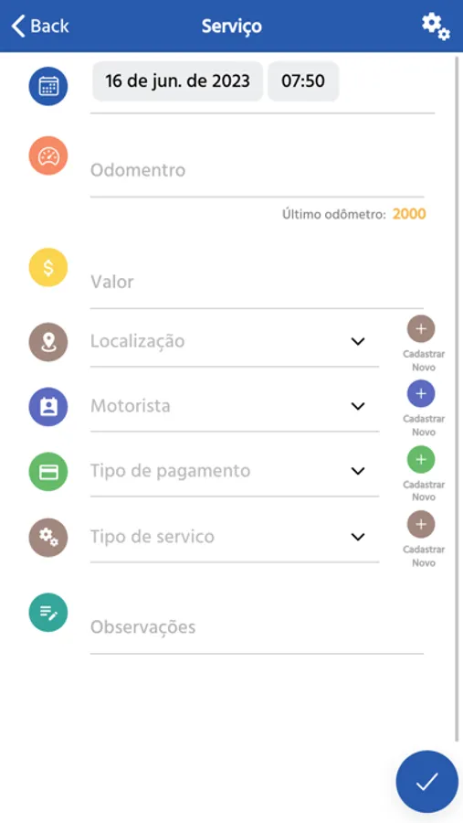Registro de Abastecimentos: Anote facilmente cada abastecimento, incluindo tipo de combustível, preço, e quilometragem.