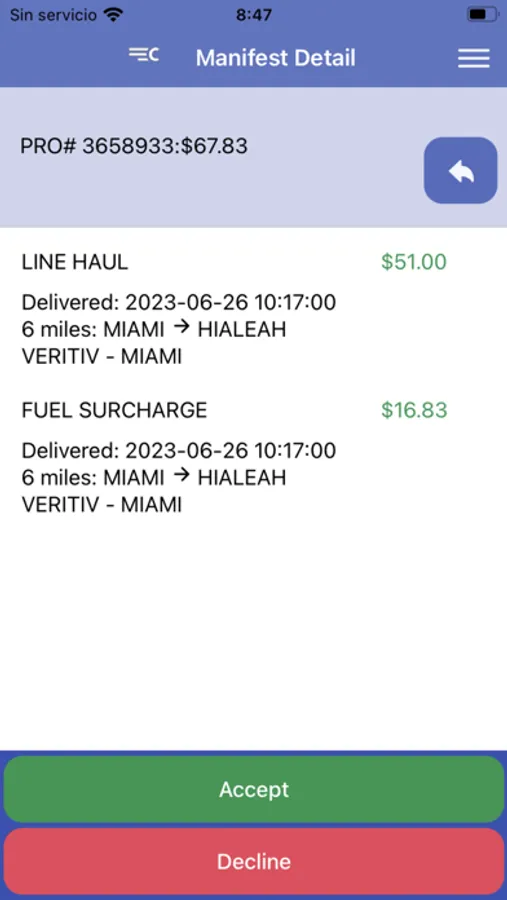This app let the Owners and Operators for Florida East Coast Railway Highway Services accept or decline their manifests for it to be accurate