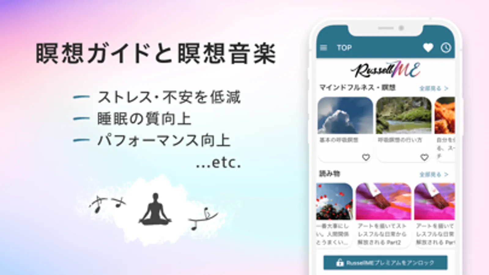 RussellME(ラッセルミー)はマインドフルネスを瞑想やヨガ、読み物を通して、基礎から体系的に学んで実践できるアプリです。