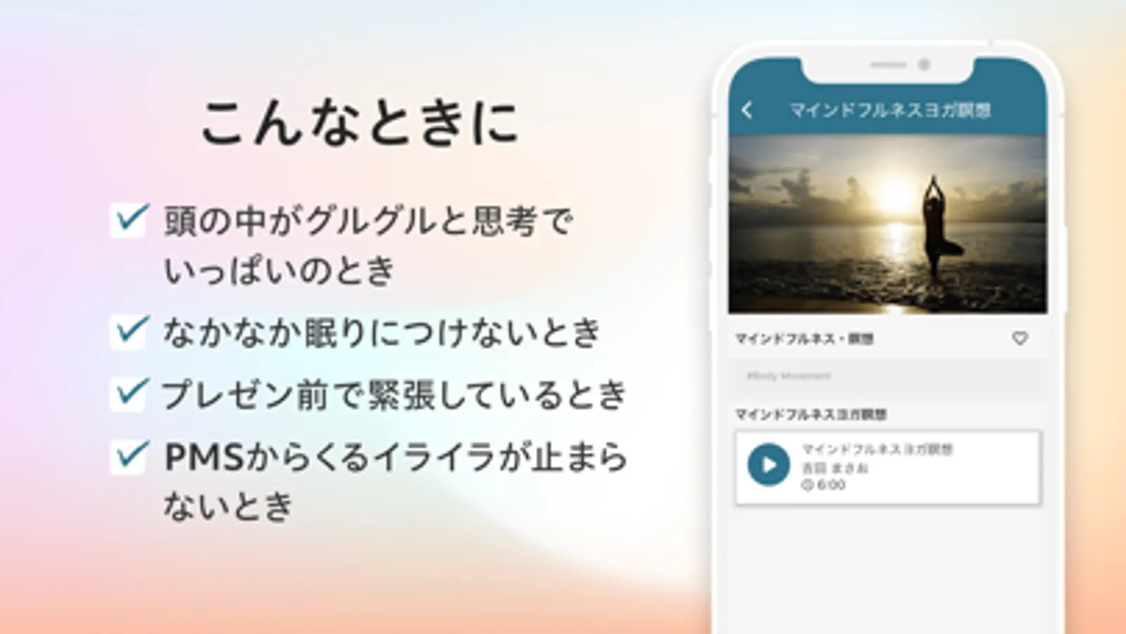エンターテイメントを楽しむ感覚で、日々の生活の中でマインドフルネスを実践できるようなコンテンツを揃えています。