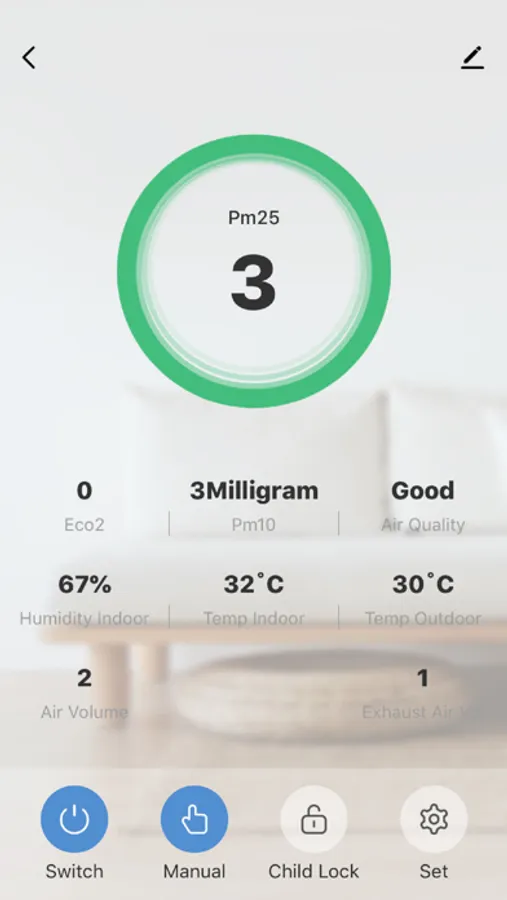2. Real time display of the home air quality, including temperature and humidity, PM2.5, VOC