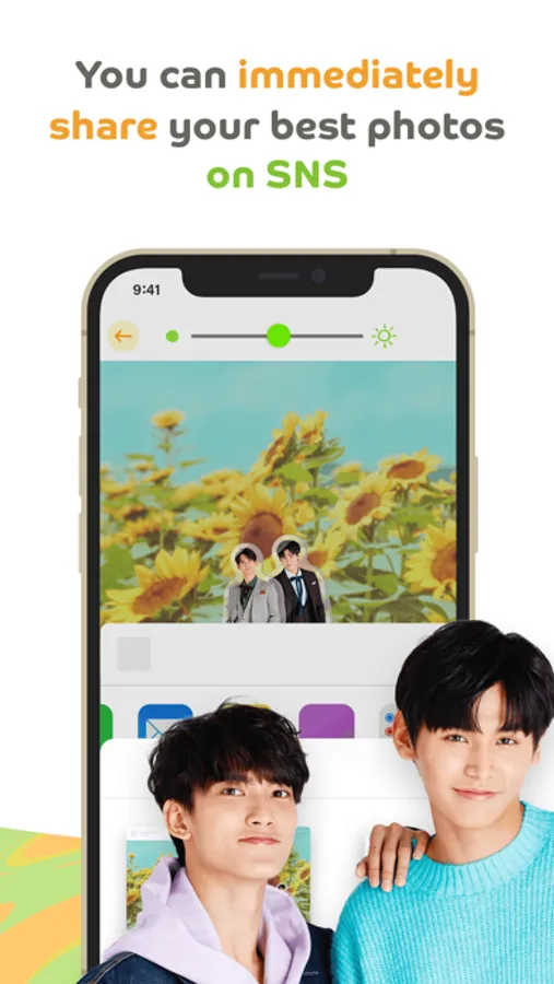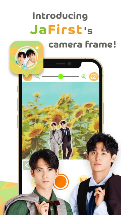 With this app, you can enjoy taking photos in the frame of the popular Thai actors Ja(Ja Phachara Suansri) and First(First Chalongrat Novsamrong) who appeared in the popular Thai BL drama "TharnType2 -7 Years of Love-", "Don't Say No -When your heart approaches-", "Be Mine. Superstar".