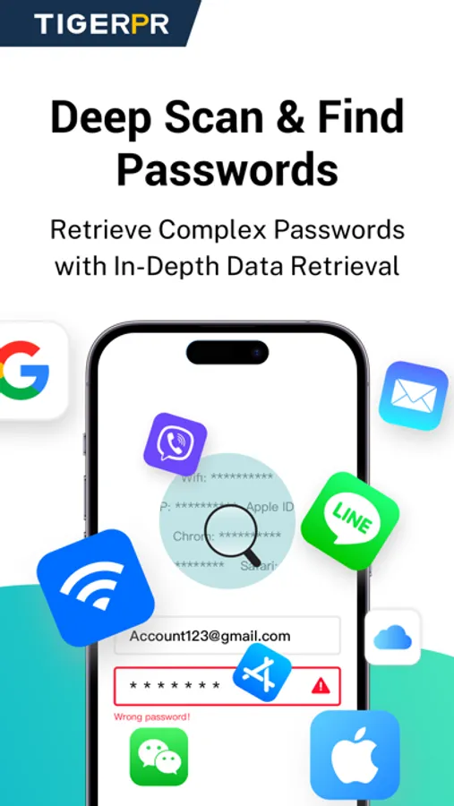 Tiger Password Recovery is a professional password recovery and management tool designed specifically for iOS users. With just one tap, it scans your device and retrieves all kinds of saved passwords — safely, efficiently, and completely offline. Whether it’s your Apple ID, Wi-Fi password, or social media account credentials, Tiger gets them all back for you!