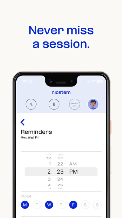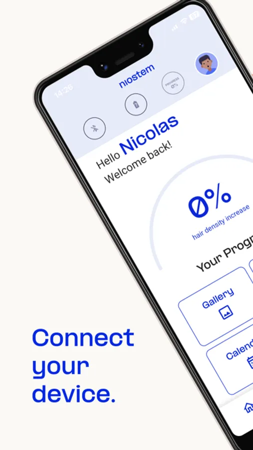 The niostem App aids users to control niostem’s device, increase adherence to the device's usage, log progress, set reminders, take & compare hair selfies. Overall, the niostem App improves the user's journey to take full control of their hair regrowth process.