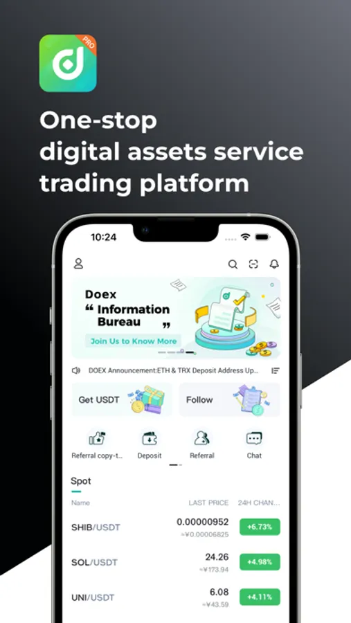 DOEX is dedicated to providing global cryptocurrency trading services and 24-hour professional digital asset futures trading and spot trading services to users worldwide. Our core team comes from global advanced Internet companies such as Google and Facebook, and our managers have extensive experience in Wall Street market investment and multinational company management.