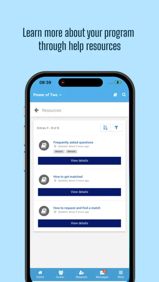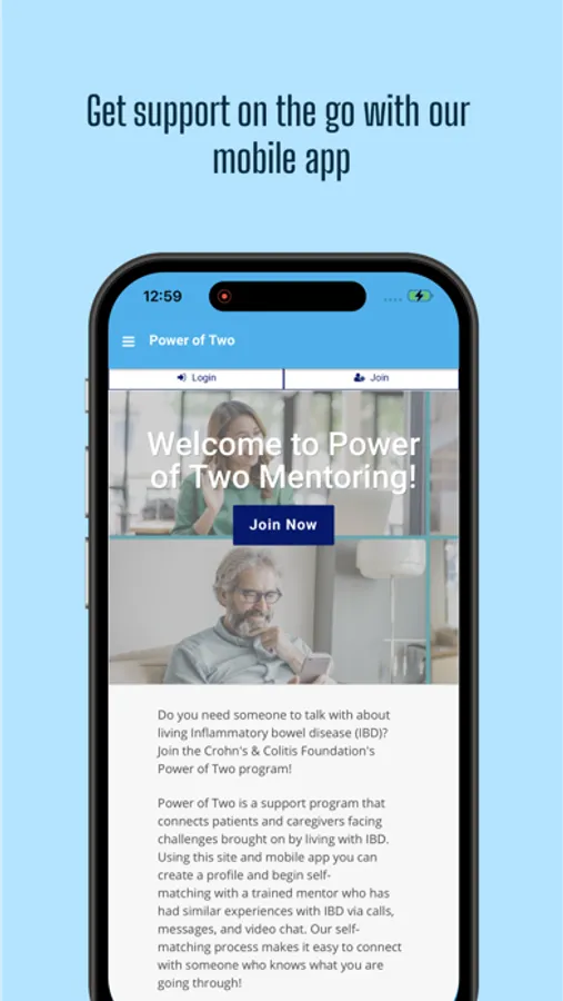 Power of Two is a peer-to-peer support program that connects patients and caregivers living with IBD. Using the app, you’ll self-match and then reach out by phone, video chat, or messaging to a peer mentor who relates to what you’re going through. Power of Two makes it easy to share your questions and experiences, safely and securely, with a trusted peer who understands.