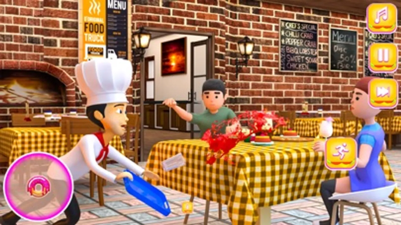 The chef in this funny cooking game takes practical jokes to a whole new level. Chef joker is prepared to provide a hilarious surprise when the first customer enters his restaurant and demands a cool glass of juice. He quickly makes the juice but just as he approaches the client, oops! The glass slips right out of his hand and falls on the customer and he looks like he wears a fruity dress. All the customers can't control their laughter and laugh hard at him but he decides won’t stop to entertain! In the second activity, he attempts to fry an egg but turns it into a burnt catastrophe. The customer, eagerly taking a bite, is greeted with a taste that's far from pleasant. Outraged, he storms out of the restaurant, leaving everyone in stitches as the chef prankster stands bewildered, eggshell in hand.