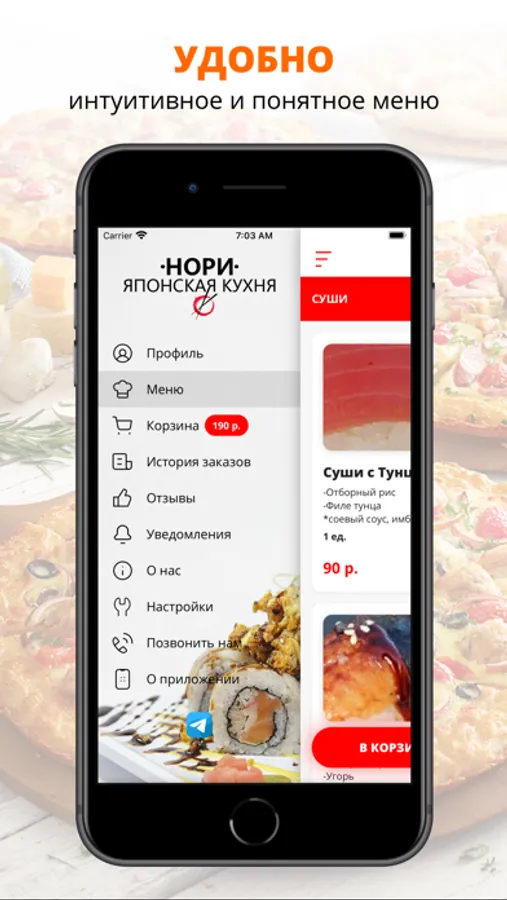 Воспользуйтесь удобным приложением для заказа еды «Нори».