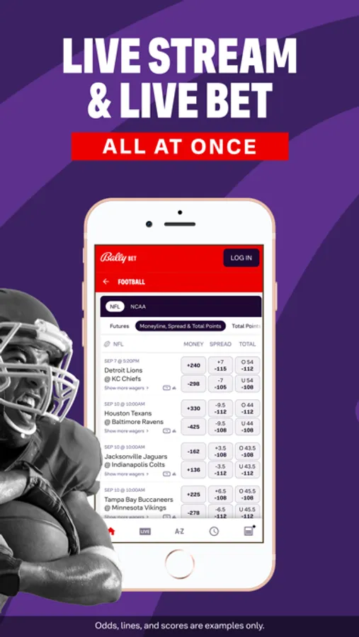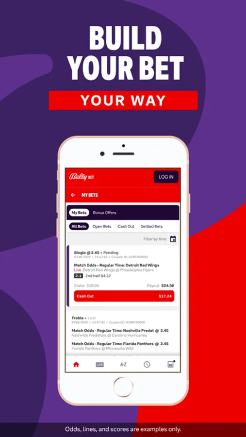 Place live bets as you watch the games all in one place as live lines and odds are shown over the top of the live stream. Watching sports events while betting live has never been easier with the new and improved Bally Bet Sportsbook app.