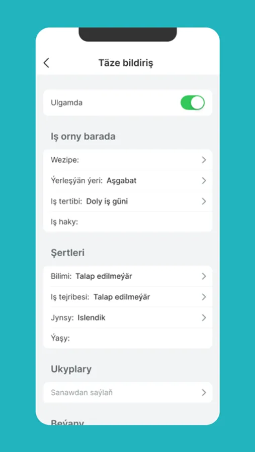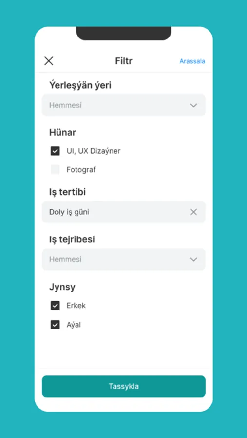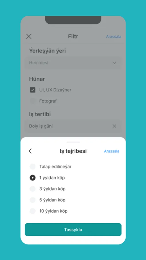 • Işleri aýlyk, tejribe derejesi we beýleki kriteriýalar boýunça filtrläň.