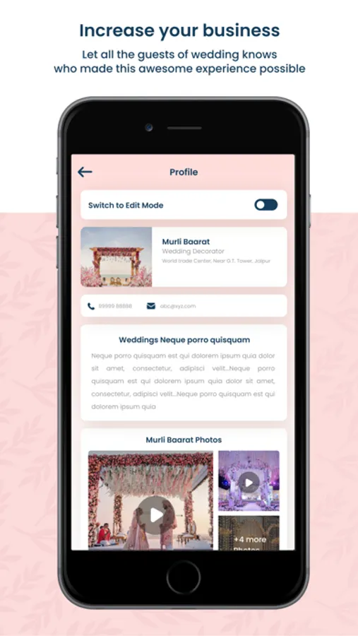 3) Effective Advertising Platform: VivaHIT for business is not just a planning tool; it's a powerful advertising platform. By showcasing your services and portfolio within the app, you gain significant exposure to both clients and their guests. Your work will be displayed prominently, allowing potential clients to discover your exceptional talent and services. The app acts as a virtual storefront, putting your business in the spotlight and opening doors to new opportunities.