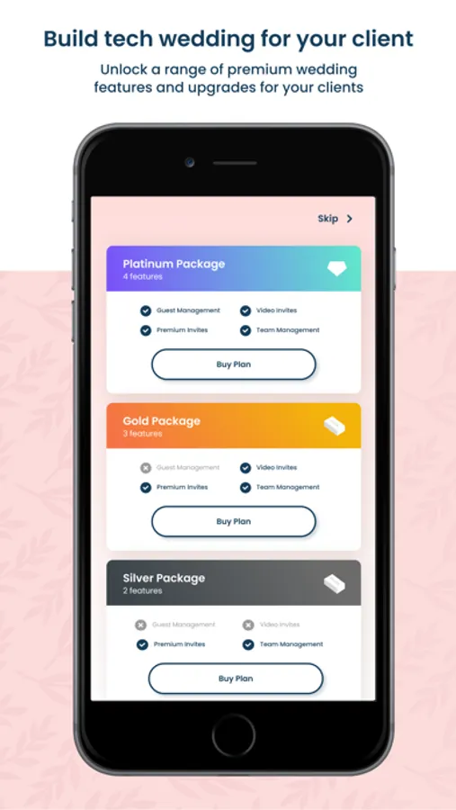 1) Unlock Exclusive Features for your client: Enhance your client’s weddings by unlocking a range of premium features and upgrades through the app. From guest management services to their personalised wedding app, you can offer your clients a menu of additional services like wedding invites, guest RSVP service, task management tools, and wedding games, allowing them to truly personalize their big day.