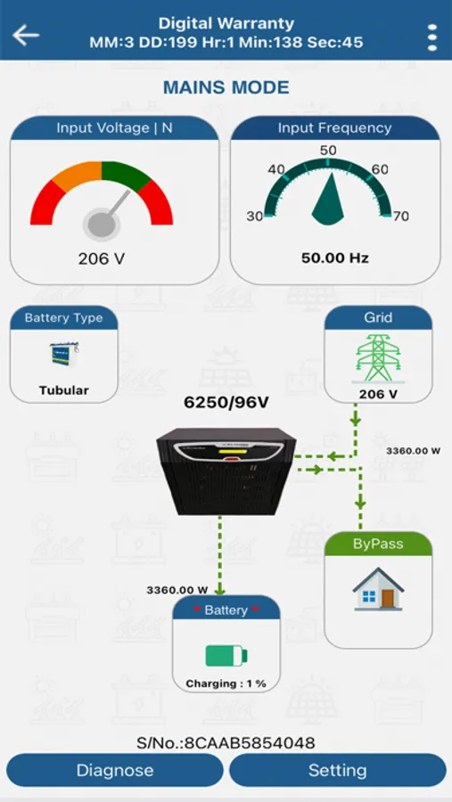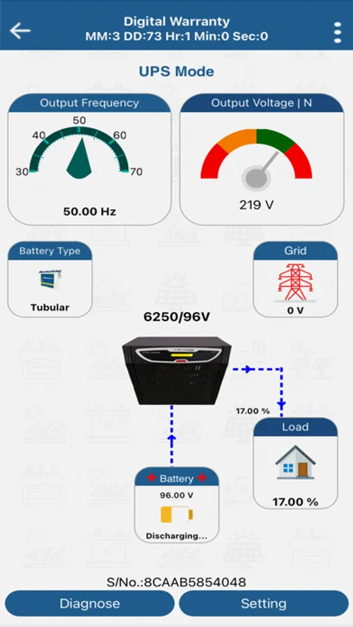 View your device's health and all operating parameters like Input voltage, Output voltage ,Battery voltage,Load percentage and it has the feature of protecting the building from a low and high voltage as it shifts to battery mode case of low and high voltage, which the company programs.