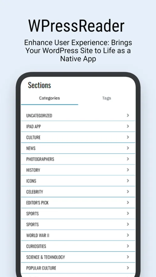 6. Seamless Content Syncing: Keep your app content up to date effortlessly. WPressReader seamlessly syncs with your WordPress site, ensuring that any changes, additions, or updates you make are reflected instantly on the app.