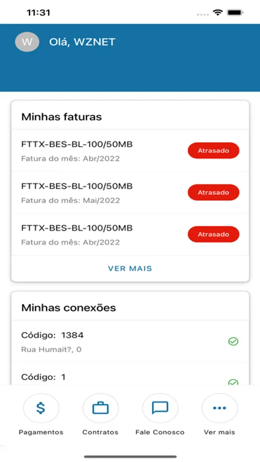Aplicativo para acessar o serviço de atendimento ao consumidor da WZnet Barreiras.