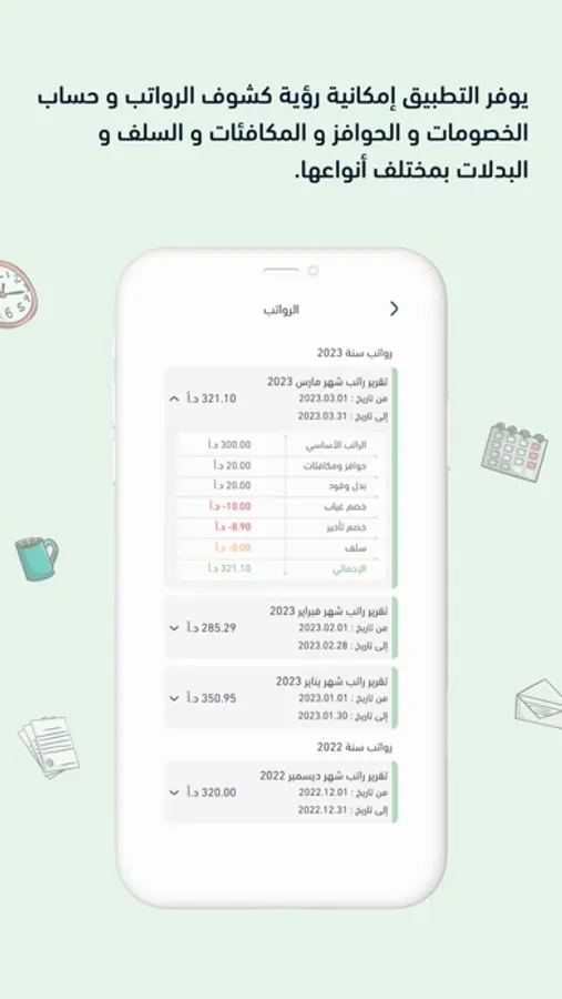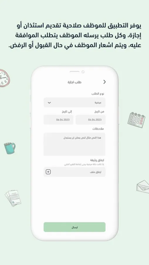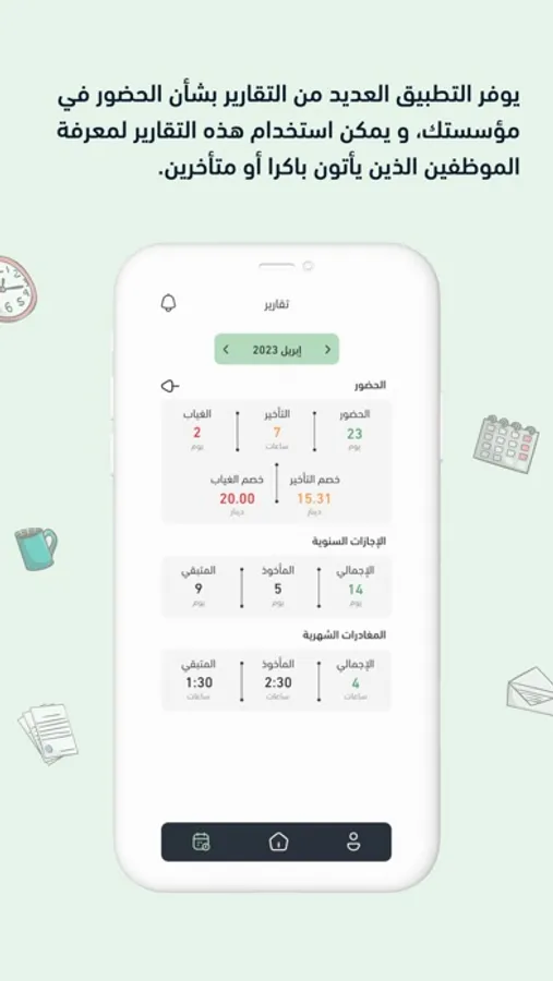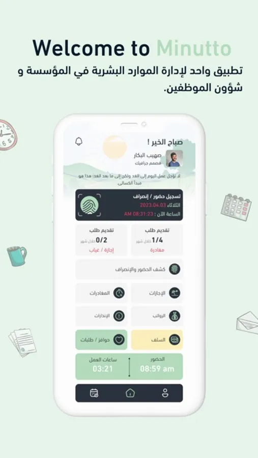تسجيل لحركات الحضور و الانصراف من خلال الهاتف المحمول للموظف.