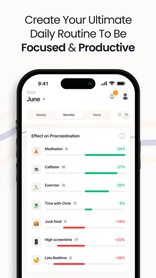 Brainway's data-driven methodology places you in control, providing all the tools you need to break down your habits, recognize their impact, and rebuild your lifestyle on your own terms. While the primary focus is overcoming procrastination, there is no limit to the habits and routines you can track, analyze, and optimize with Brainway.