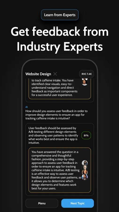 Education is outdated because it’s linear. We’re taught to think like a machine. But in the real world it’s logic and creativity that make you win. So we’ve build an app teaches you that using AI. Choose your industry and learn with Dynamic Logic, where every task changes depending on how you answer. Get instant feedback based on real Industry Experts that train our AI models.