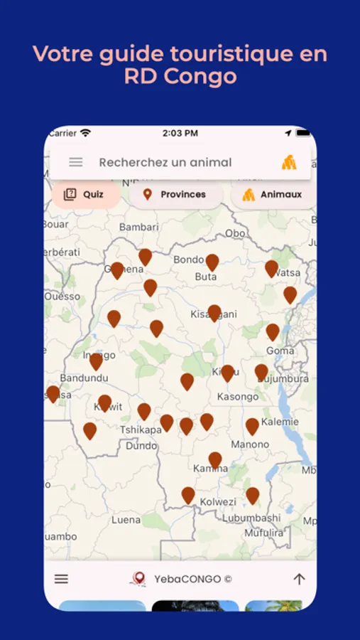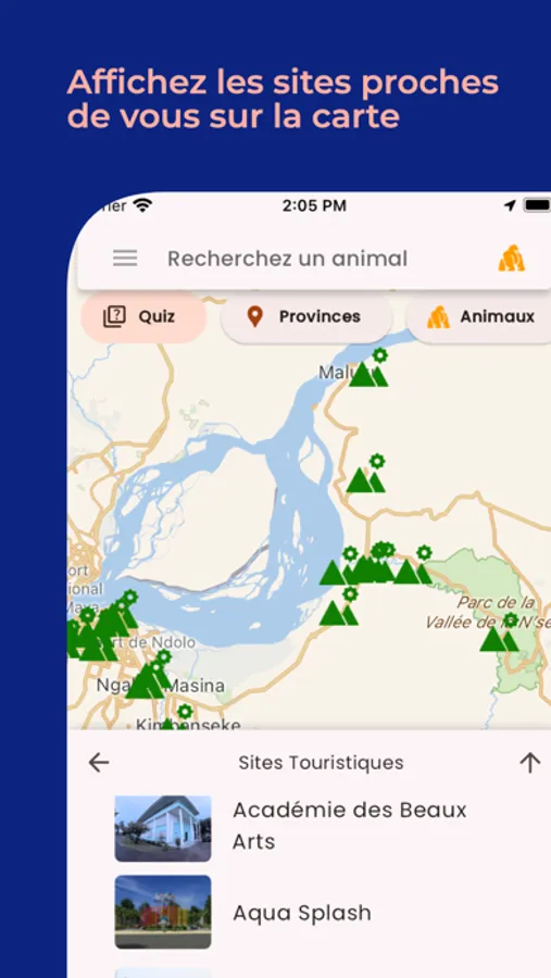YebaCONGO vous permet de trouver rapidement des sites touristiques, parcs et réserves protégées sur votre environnement. Combien de fois avez-vous dû chercher un site touristique le plus proche ? YebaCONGO identifie rapidement votre position et vous permet de trouver à proximité le site touristique, l’aire protégée, l’hôtel, le restaurant et le tour-opérateur que vous cherchez.