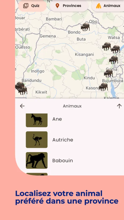 YebaCONGO vous montre une liste complète des sites par province et les animaux à visiter dans cette province.